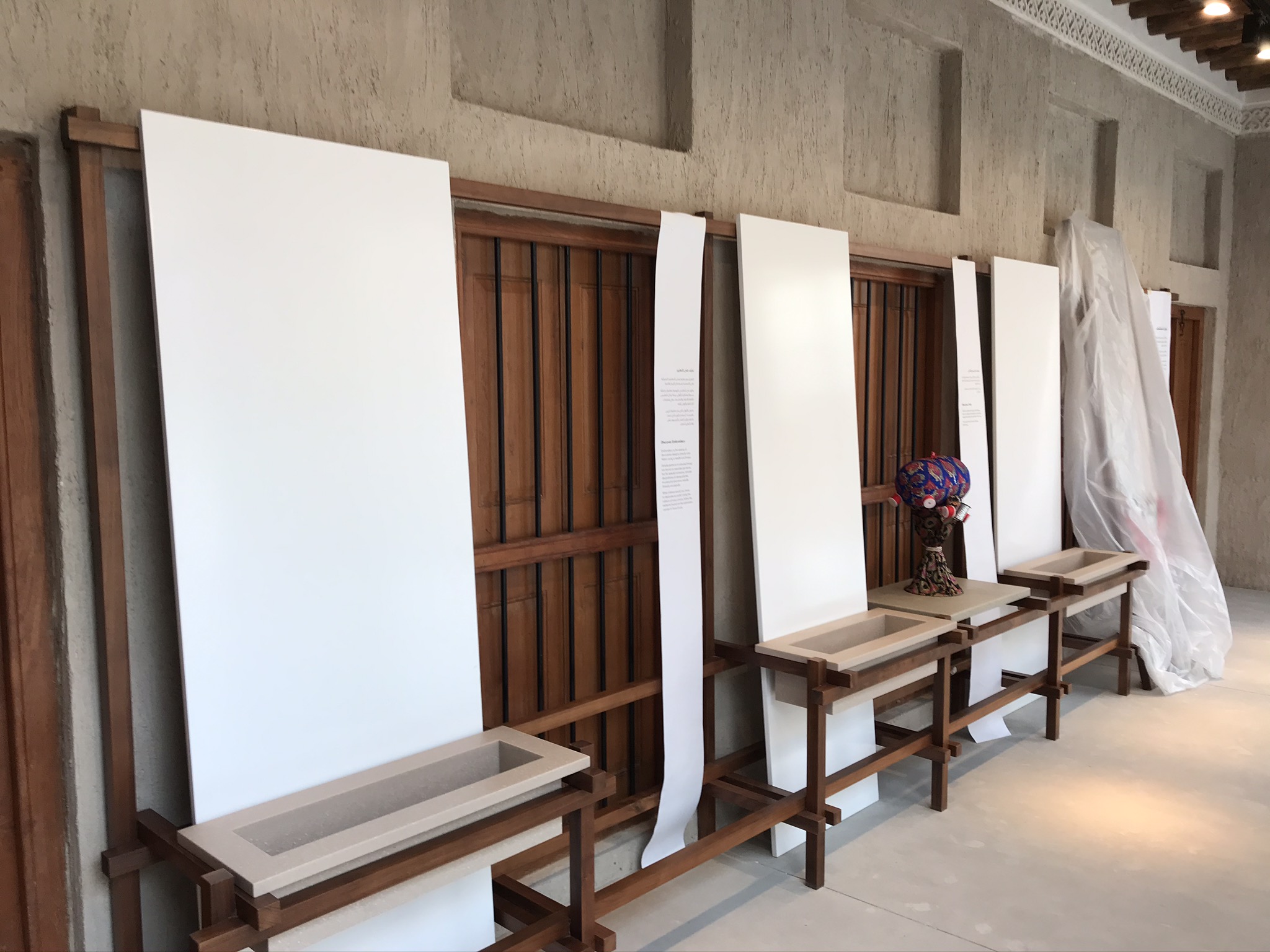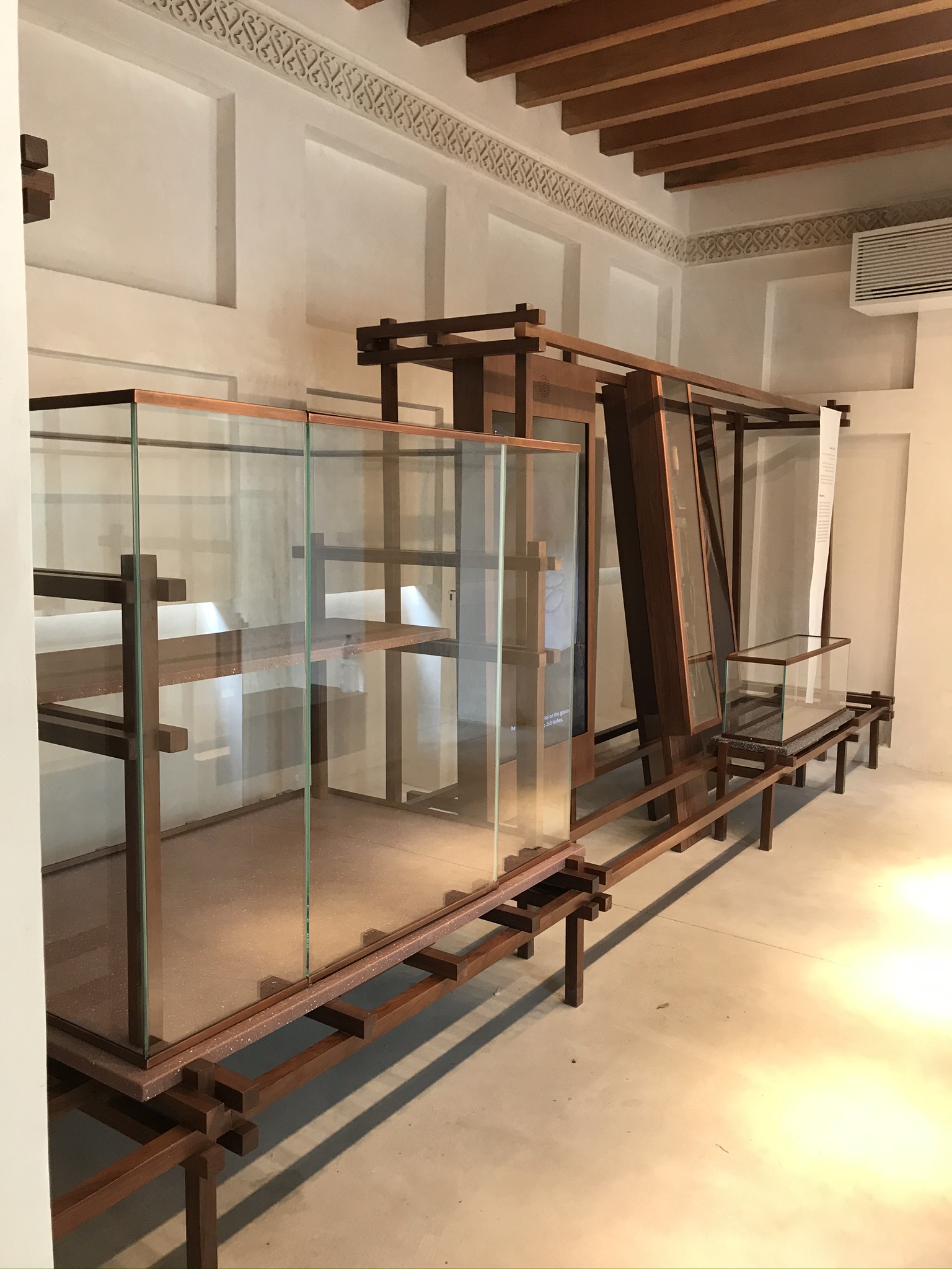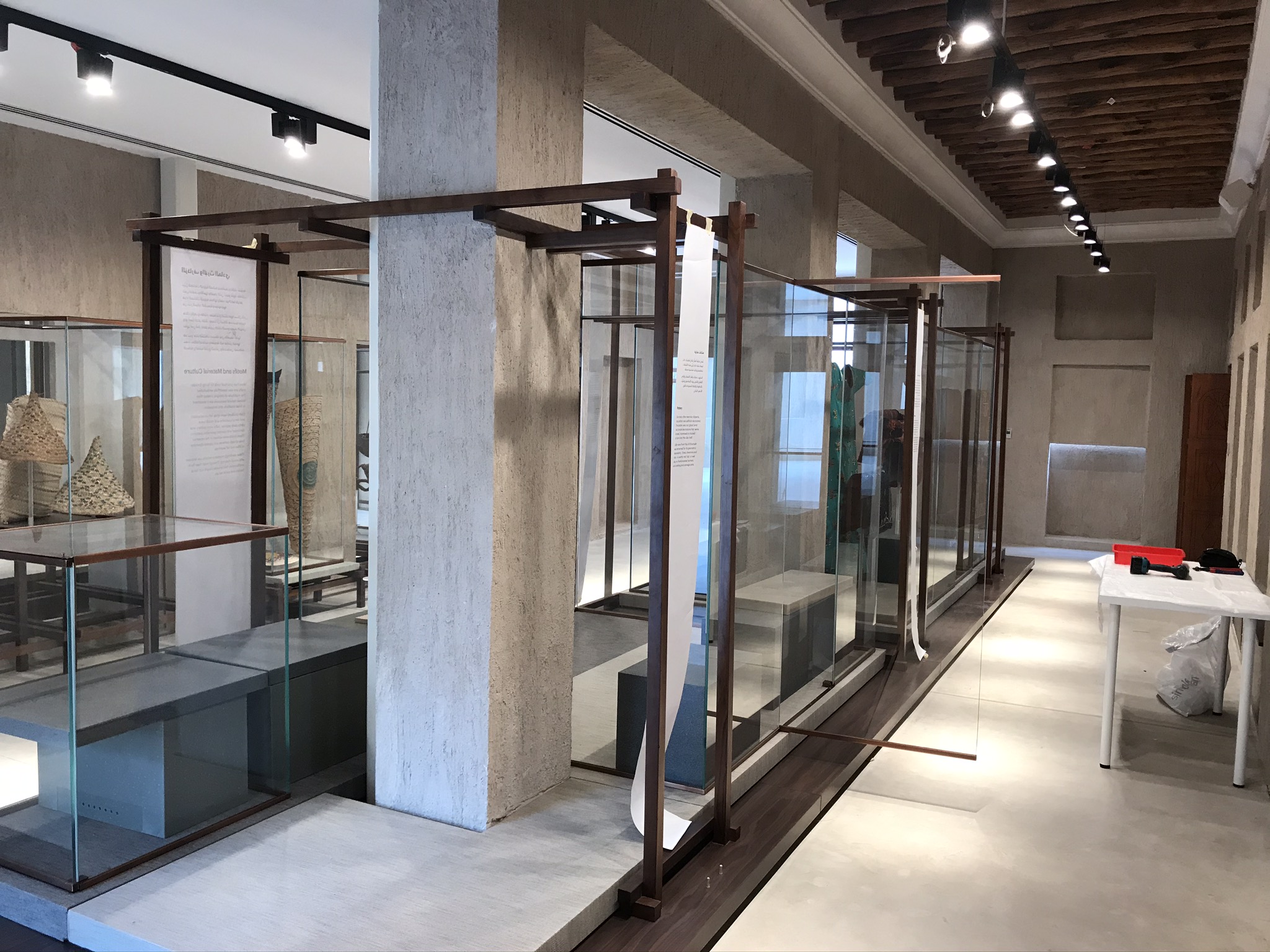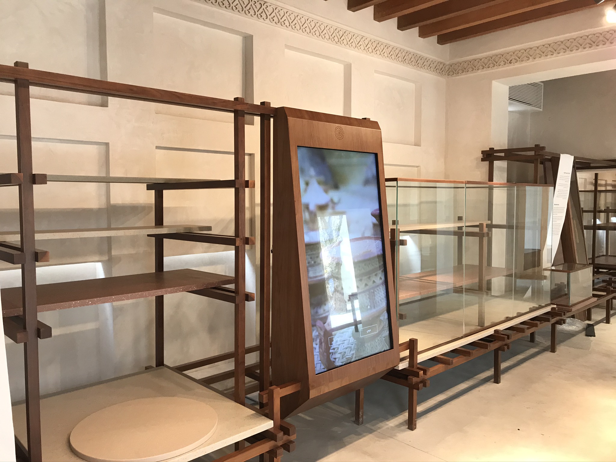 Design, co-ordination and Execution of 11 Chapters each chapter including a wooden set work made in walnut oak wood displaying artefacts on stone finish Corian bases and descriptions of the art printed on yellow Jasmonite Corian panels.