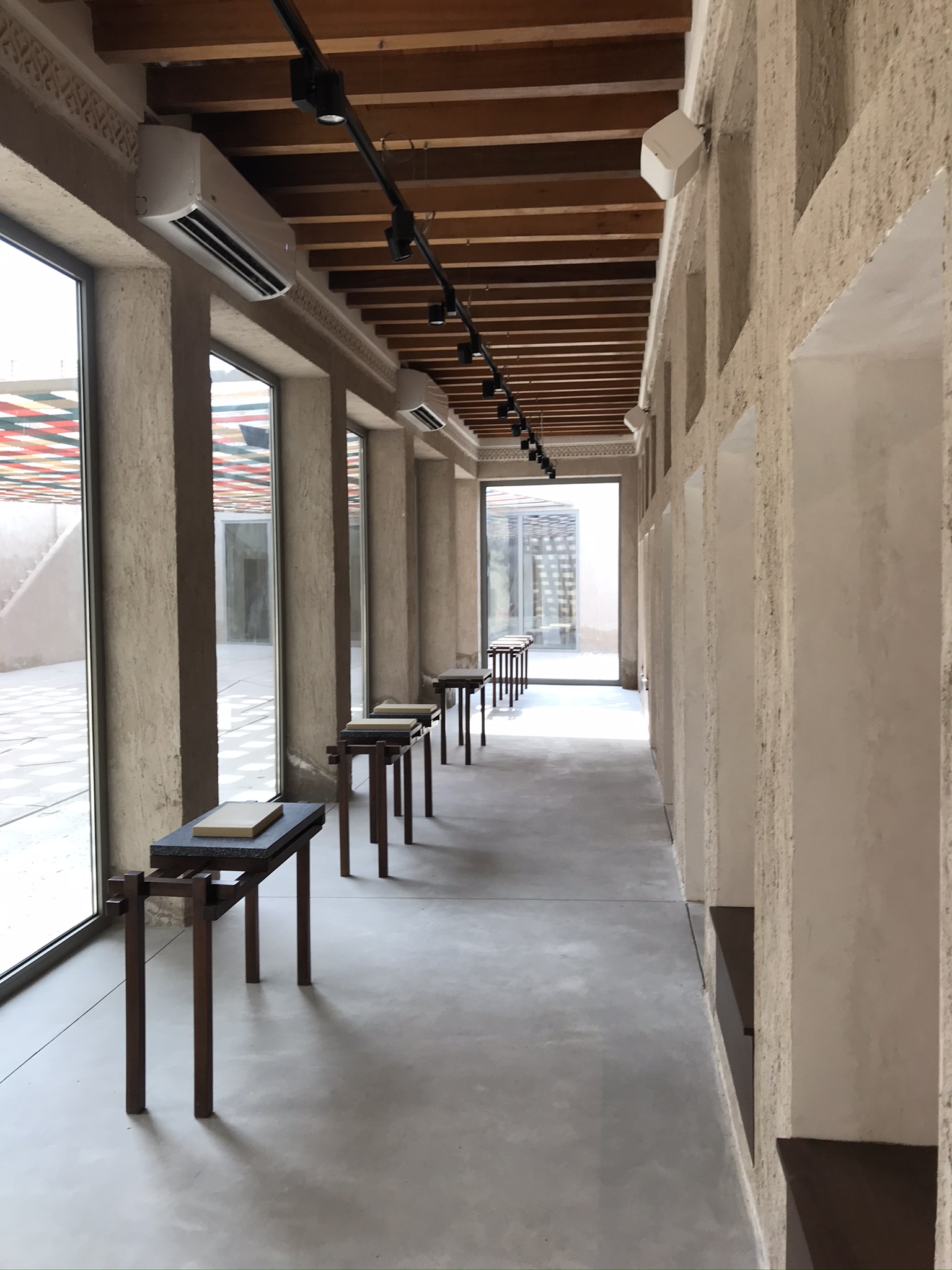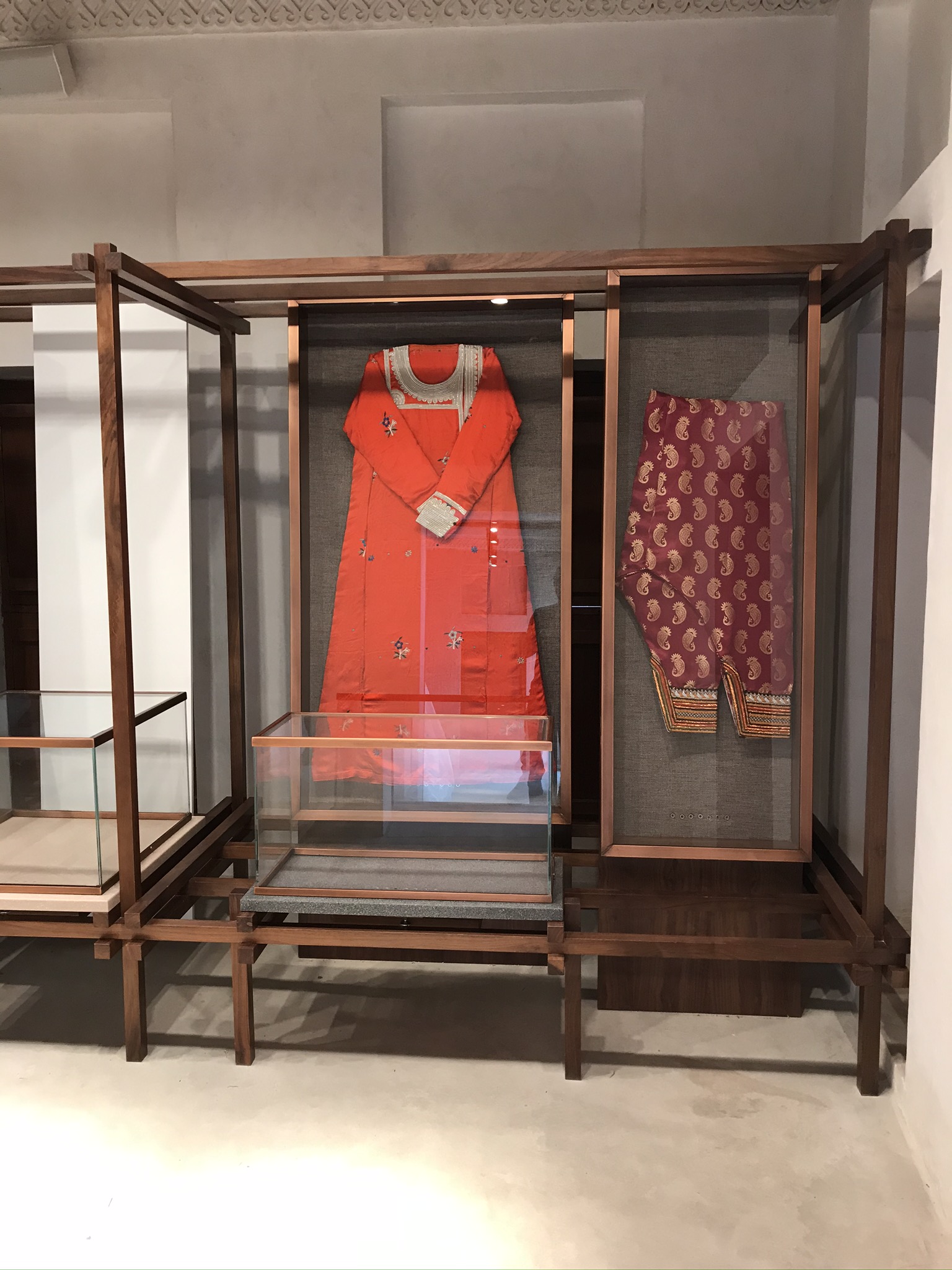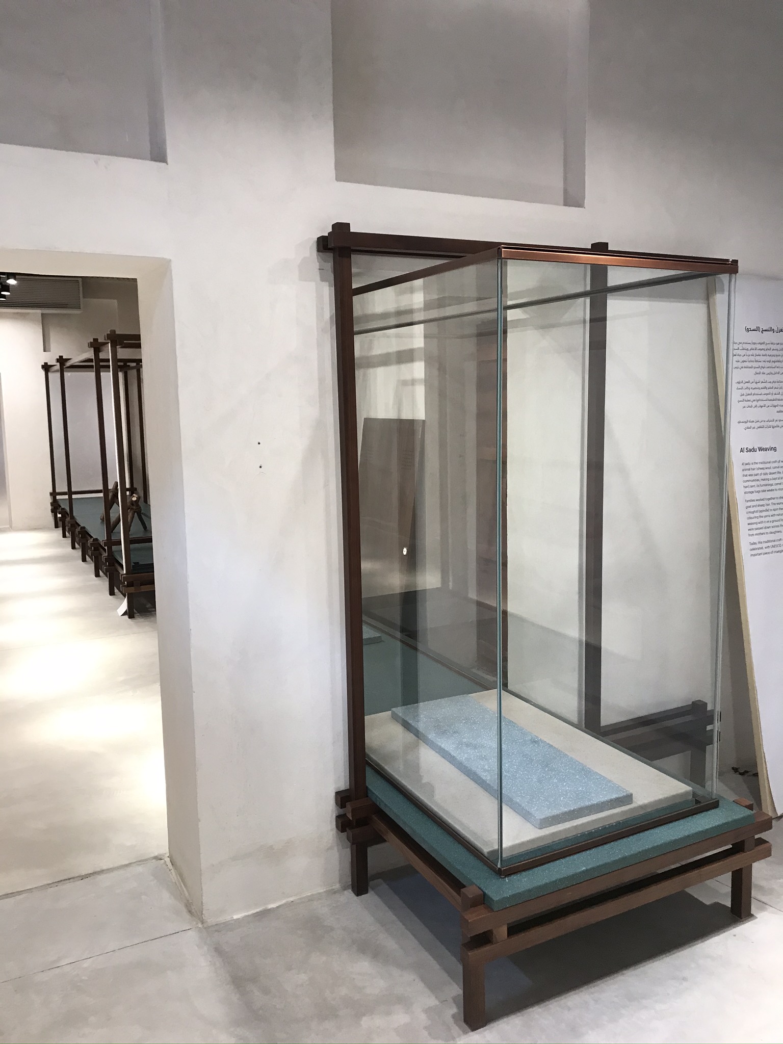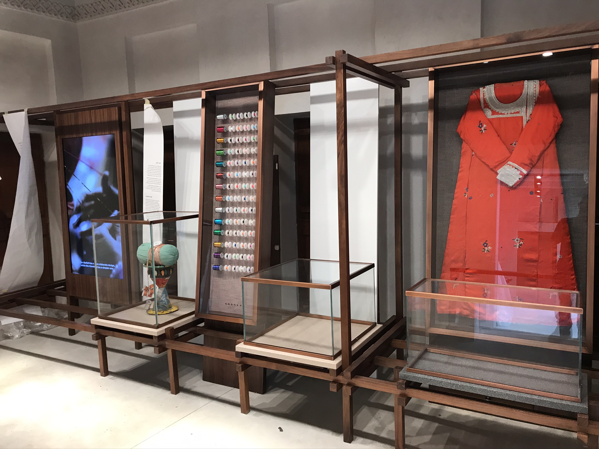 Design, co-ordination and Execution of 11 Chapters each chapter including a wooden set work made in walnut oak wood displaying artefacts on stone finish Corian bases and descriptions of the art printed on yellow Jasmonite Corian panels.